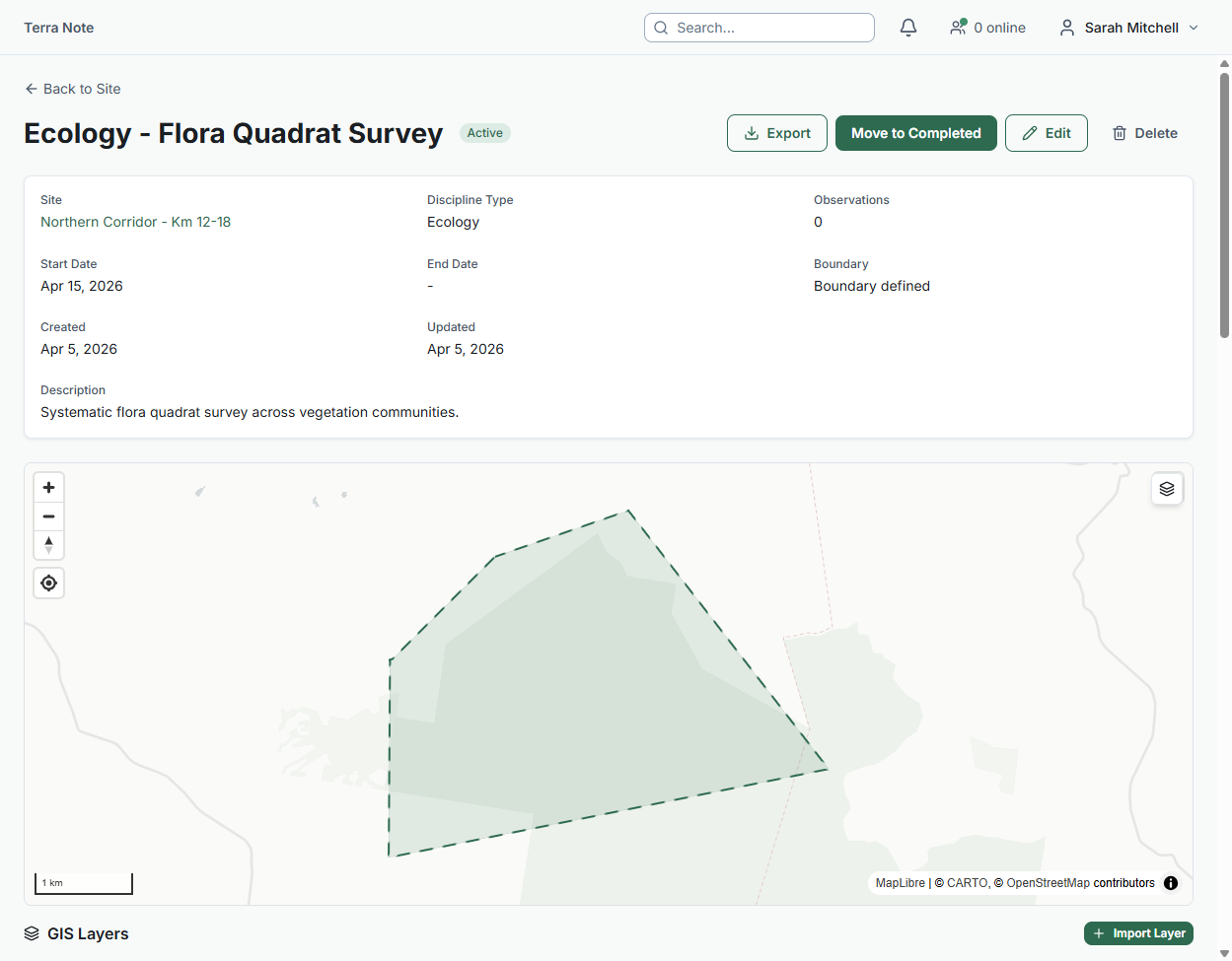 Tip: For large excavations, consider creating separate surveys for each area or phase (e.g. "Excavation Phase 1 — Area A") rather than one survey for the whole site. This keeps photo registers to a manageable size and makes it easier to assign recording to different team members.